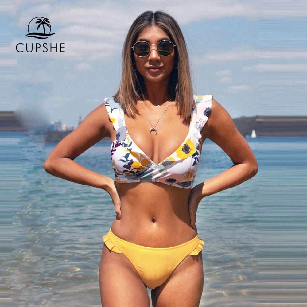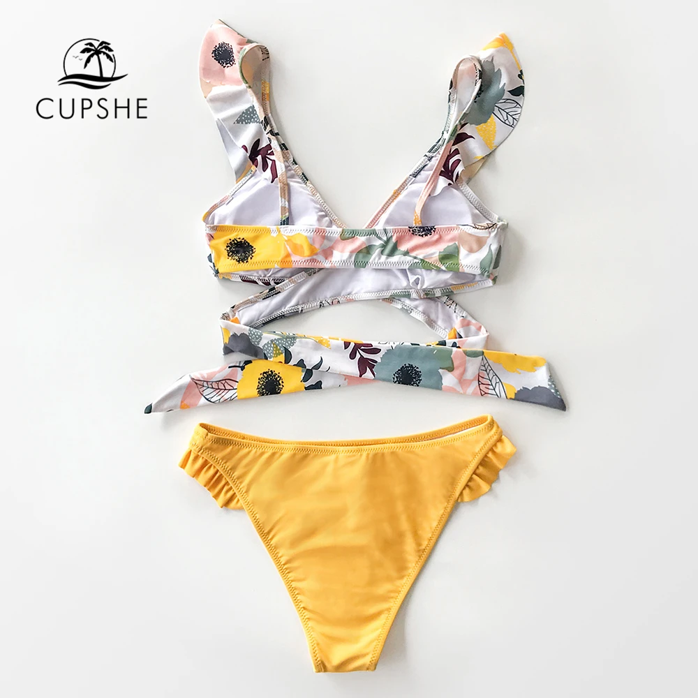 Best Product CUPSHE Ruffled Floral Wrap V-neck Bikini Sets Sexy Lace Up Bikinis Swimsuit Two Pieces Swimwear Wom